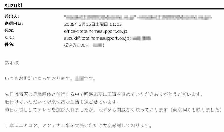 お客様から頂いたお礼のお言葉やご感想をご紹介させて頂きます。アンテナ工事後の実際の生の声やメールなどをそのまま掲示させて頂いております。